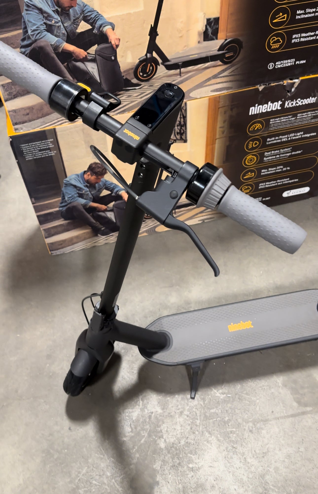 Zip around the neighbourhood or across campus on the Ninebot by Segway KickScooter MAX electric scooter. This powerful scooter reaches a top speed of 18.6mph (30km/h) and can go 40.4 miles (65 km) on a single charge so you can keep going. It's equipped with 10" pneumatic tires to ensure a super-smooth ride no matter where you're riding.